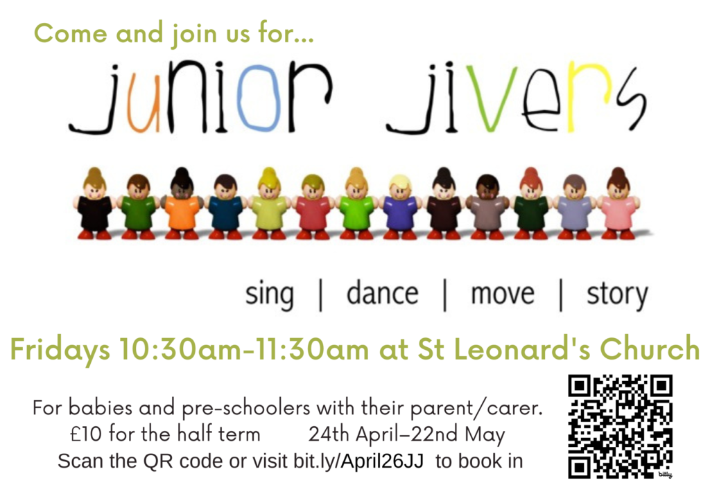Junior Jivers at St Leonard’s Click on the flier to book or email junior-jivers@stleonards.church if you have any questions.Begins on Friday 24th April 2026.